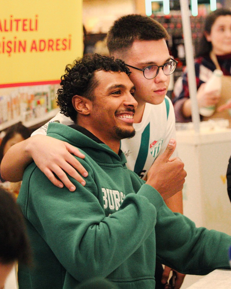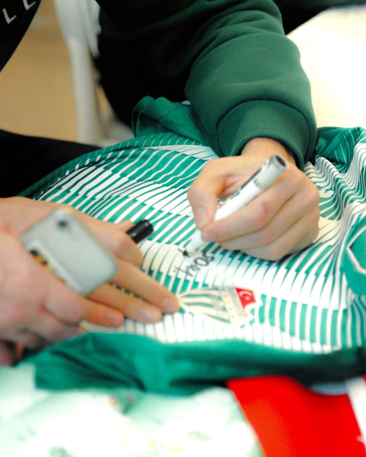 Bursasporlu oyuncular Ömer Utku Al, David Mutaf ve Donte Grantham’dan imza almak ve fotoğraf çektirmek için bir biriyle yarışan taraftarlar, etkinlik sonrası mutluluklarını gizleyemedi.