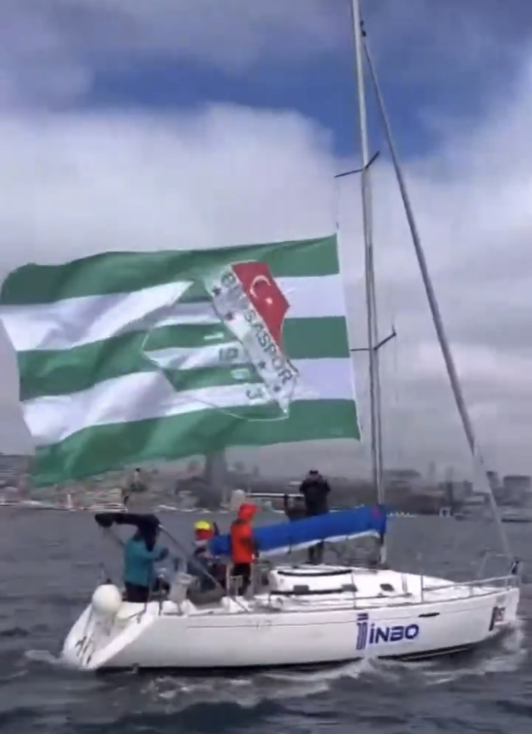 Bursaspor bayrağının dalgalandığı teknenin videosunu çeken 29 yaşındaki futbolcu, paylaştığı müzikle de tam not aldı.