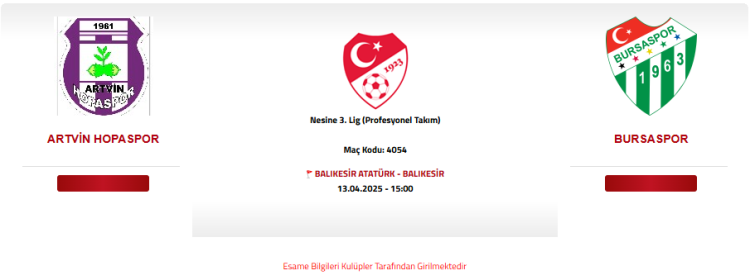 13 Nisan Pazar günü oynayacağımız Artvin Hopaspor karşılaşması ev sahibi takımın bu sezon zorunlu olarak müsabakalarını oynadığı Arhavi İlçe Stadyumunun tadilata alınması sebebiyle ev sahibi takımın başvurusu ve talebi doğrultusunda İstanbul’a alınmak…