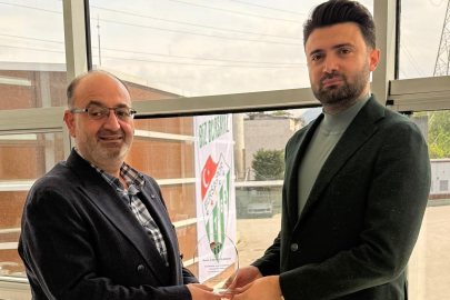 Bursaspor Başkanı Enes Çelik, katkılarından dolayı Et Tat Yönetim Kurulu Başkanı Yıldırım Yıldırım’a teşekkür plaketi takdim etti.