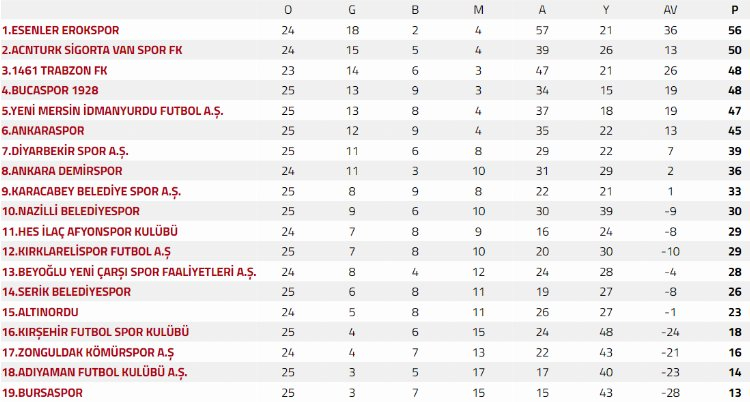 Düşme potasının bir basamak üstünde yer alan Altınordu bu hafta Adıyaman FK’yı 2-1 yenince puanını 23 yaptı.