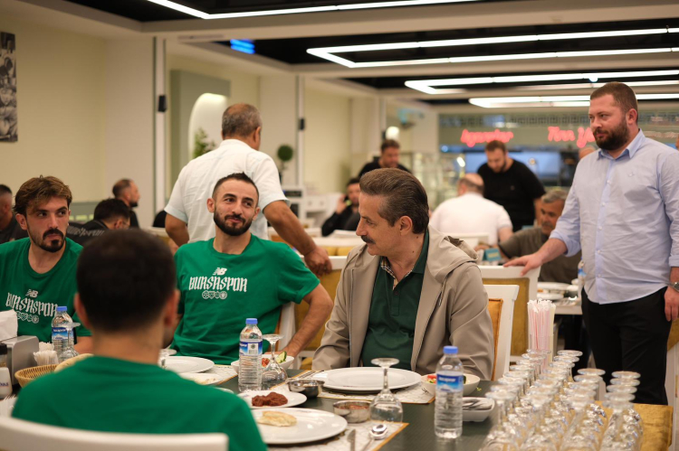 Yeşil-beyazlı takımı 8-0’lık galibiyeti sonrası yemekte ziyaret eden Çelik, futbolcuları tebrik etti.