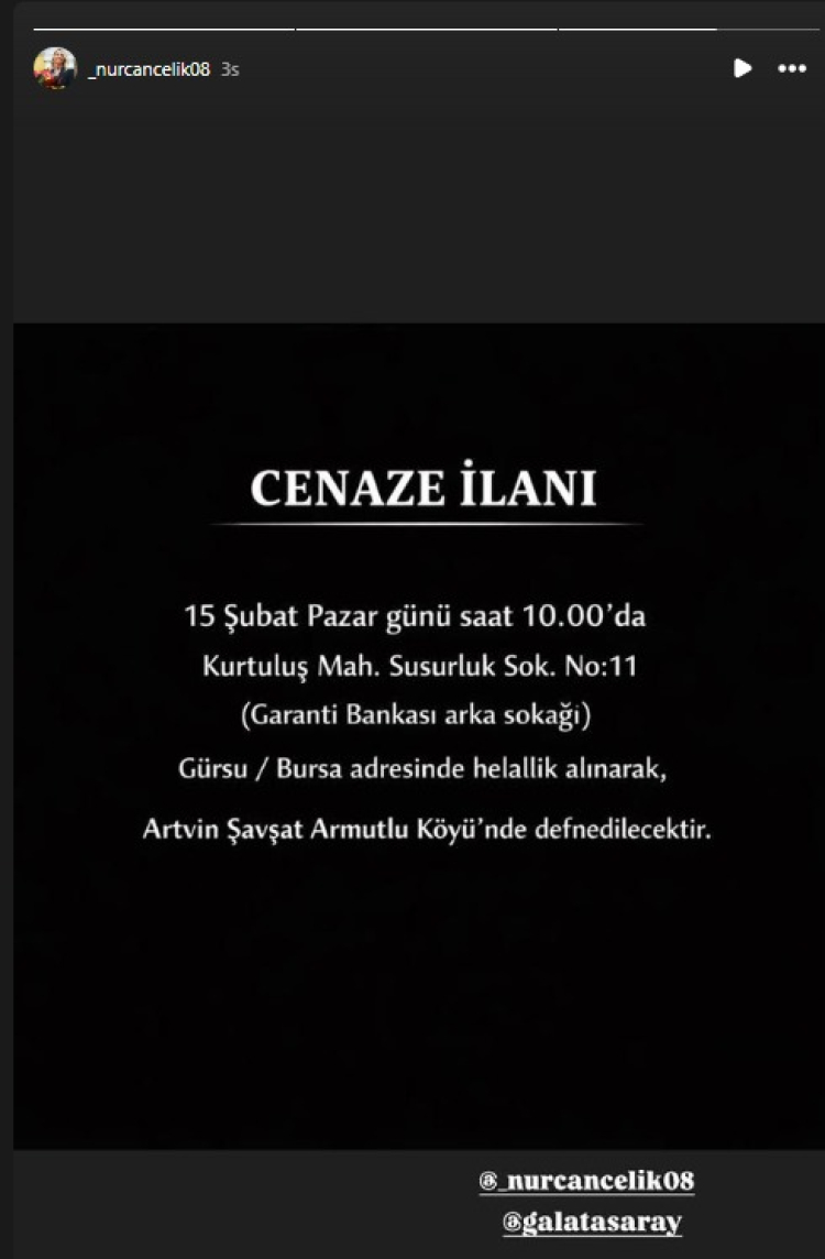 Merhume Çelik'e ait sosyal medya hesabından yapılan paylaşımda, "Nurcan Çelik vefat etmiştir. Cenazesi, yarın saat 10.00'da Gürsu ilçesi Kurtuluş mahallesi Susurluk sokak no:11 adresinde evimizde helallik alınmasının ardından memleketi Artvin Şavşat Armutlu köyünde defnedilecektir." ifadeleri kullanıldı.