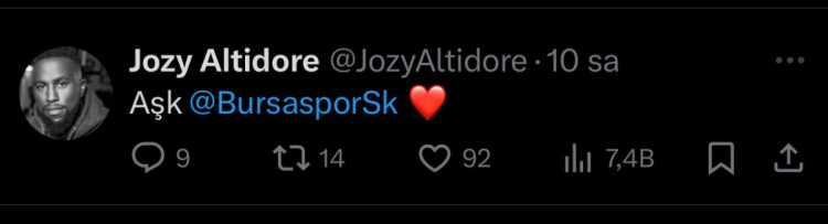 Jozy Altidore’un bu paylaşımı altına birçok Bursaspor taraftarı da güzel yorumlarda bulundu. Dünyaca tanınan futbol adamı Bursaspor formasını 12 kez terletmiş, sonrasında da AZ Alkmaar’a transfer olmuştu.