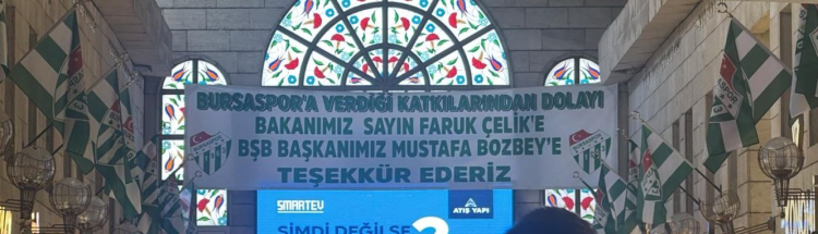 Bursa’nın dört bir yanı Bursaspor bayrakları ile süslenirken en dikkat çeken pankartlar Kapalı Çarşı’ya asıldı. Çarşı esnafı dükkanlarının önüne Bursaspor bayrağı asmakla yetinmeyip, astıkları pankartlarla yaşanılan şampiyonlukta emeği geçen önemli isimleri onurlandırmayı da unutmadı. Bursaspor Başkanı Enes Çelik’le ilgili asılan pankartta, “Bursaspor Başkanı Enes Çelik ve yönetim kurulunu tebrik eder başarılar dileriz.” denildi. Çarşı esnafı önceki dönem bakanlarından ve AK Parti Artvin Milletvekili Faruk Çelik ile Bursa Büyükşehir Belediye Başkanı Mustafa Bozbey’i de unutmayarak, “Bursaspor’a verdiği katkılardan dolayı bakanımız sayın Faruk Çelik’e ve Büyükşehir Belediye Başkanımız Mustafa Bozbey’e teşekkür ederiz.” ifadelerine yer verdiği pankartı da astı.