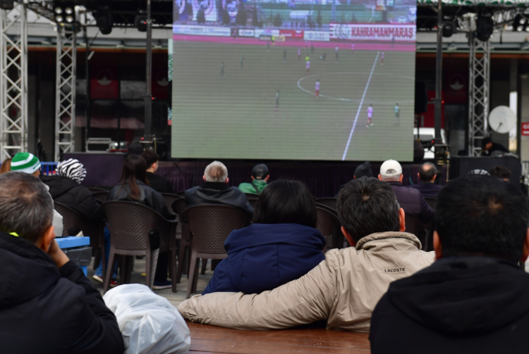 Kentin en önemli değerlerinden Bursaspor’a olan desteğini her alanda sürdüren Osmangazi Belediyesi, yeşil beyazlı takımın Nesine 2. Lig’in 28. Haftası’nda deplasmanda karşılaştığı Akedaş Kahramanmaraş İstiklal Spor mücadelesine özel olarak Osmangazi Meydanı’nda dev ekran kurdu.