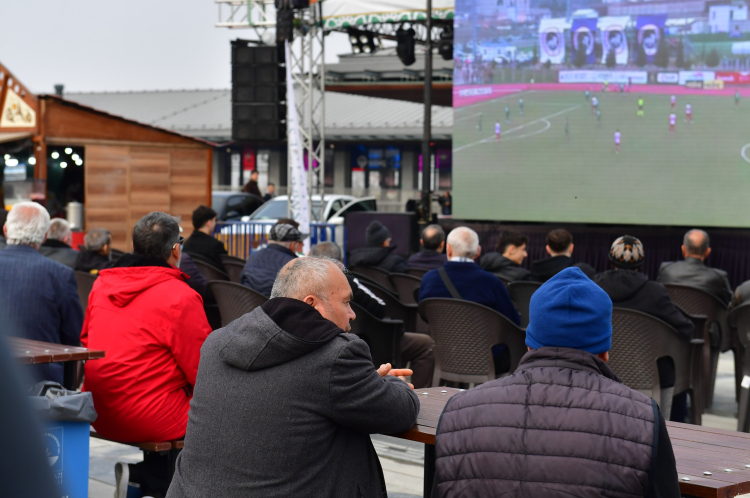 Maç saatine yaklaşırken meydanda toplanan Bursaspor taraftarları, takımlarına destek verdi. Kurulan dev ekranda karşılaşmayı takip eden Osmangazili vatandaşlar, 90 dakika boyunca büyük bir heyecan yaşadı. Aileleri ve arkadaşlarıyla birlikte meydana gelen vatandaşlar, Bursaspor sevgisini birlikte paylaştı.