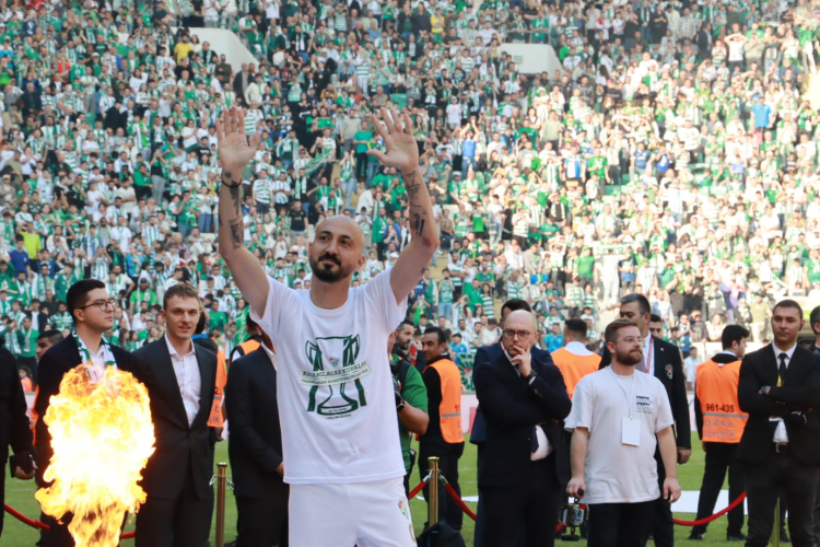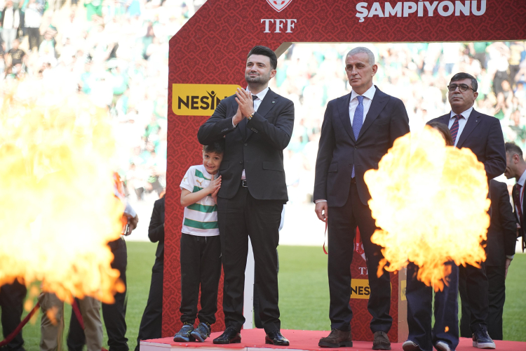Oyuncular tek tek tanıtılıp madalyalara takıldıktan sonra, Bursaspor Başkanı Enes Çelik ve Türkiye Futbol Federasyonu Başkanı İbrahim Hacıosmanoğlu, şampiyonluk kupasını kaptanlar Ahmet İlhan Özek ve Furkan Emre Ünver’e teslim etti.