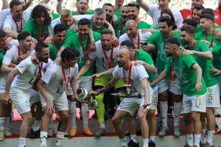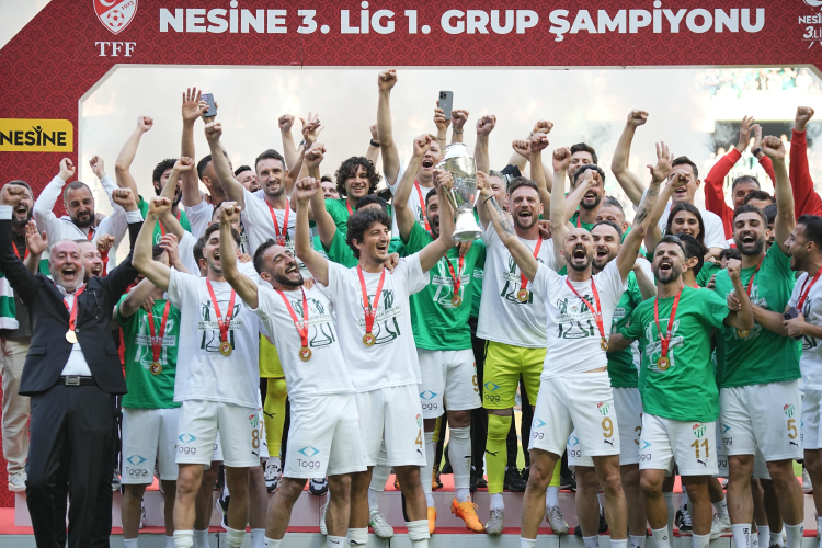 Nesine 3.Lig 1.Grup'ta şampiyonluğa ulaşan Bursaspor, 45 bin taraftarın önünde şampiyonluk kupasını kaldırdı.