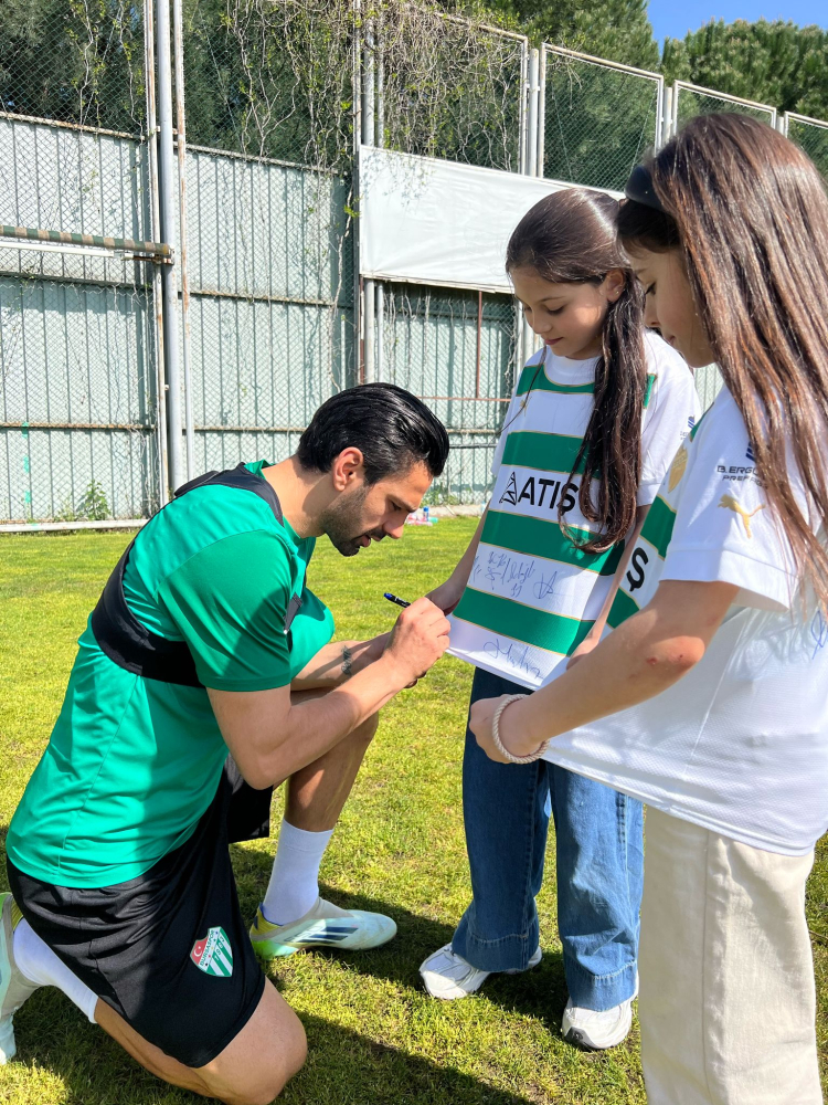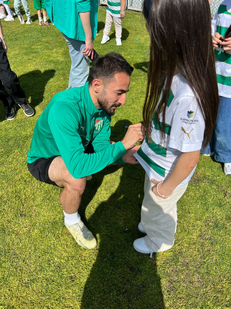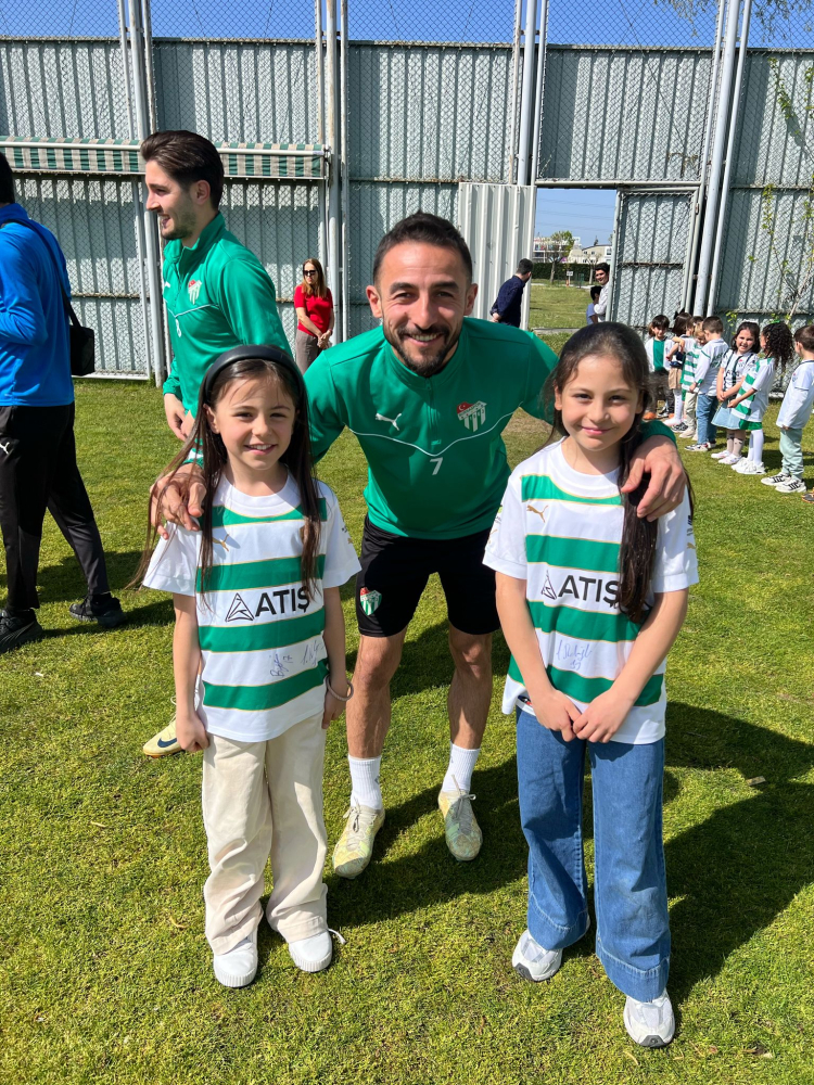 TFF 3. Lig’de şampiyonluğa ulaşan Bursaspor’da teknik heyet ve futbolcular Özlüce İbrahim Yazıcı Tesisleri’nde minik konuklarını ağırladı.