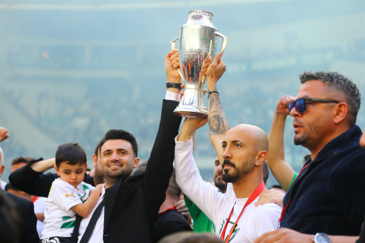 Bursaspor Başkanı Enes Çelik şampiyonluk kupasının ardından önemli açıklamalar yaptı. Başkan Çelik, “10 aydır ciddi bir emek sarf ettik. Ve bugün bu emeklerimizin karşılığını aldık. Battala hocamız, Adem Hocamız, teknik heyetlerimiz, futbolcularımız ve tüm şehrimize teşekkür ediyorum. Başarı birliktelik ile geldi. Ayrım yapmadan 4 milyonluk şehir kenetlendi. Bizlerde şeffaf bir yönetim gösterdik ve başarıya ulaştık. 2 sene içerisinde Süper Lig hedefine de ulaşacağız. Ve bu hedefe ulaştığımızda borçsuz bir Bursaspor olacak. Önümüzdeki sezon için de hızlı bir şekilde çalışmalarımızı tamamlayacağız. Sezon başlamadan önce daha dinamik bir kadro kuracağız. Kamp çalışmamızı yapacağız. Şampiyonluğun kazanılmasında büyük pay sahibi olan taraftarlarımıza ayrıca teşekkür ediyorum. Her maç 40 bin taraftara oynadık. 33 bin 500 kombine bileti sattık. Taraftarımızın bu desteği sürdüğü müddetçe en kısa sürede takımı Süper Lig’e taşıyacağız” dedi.