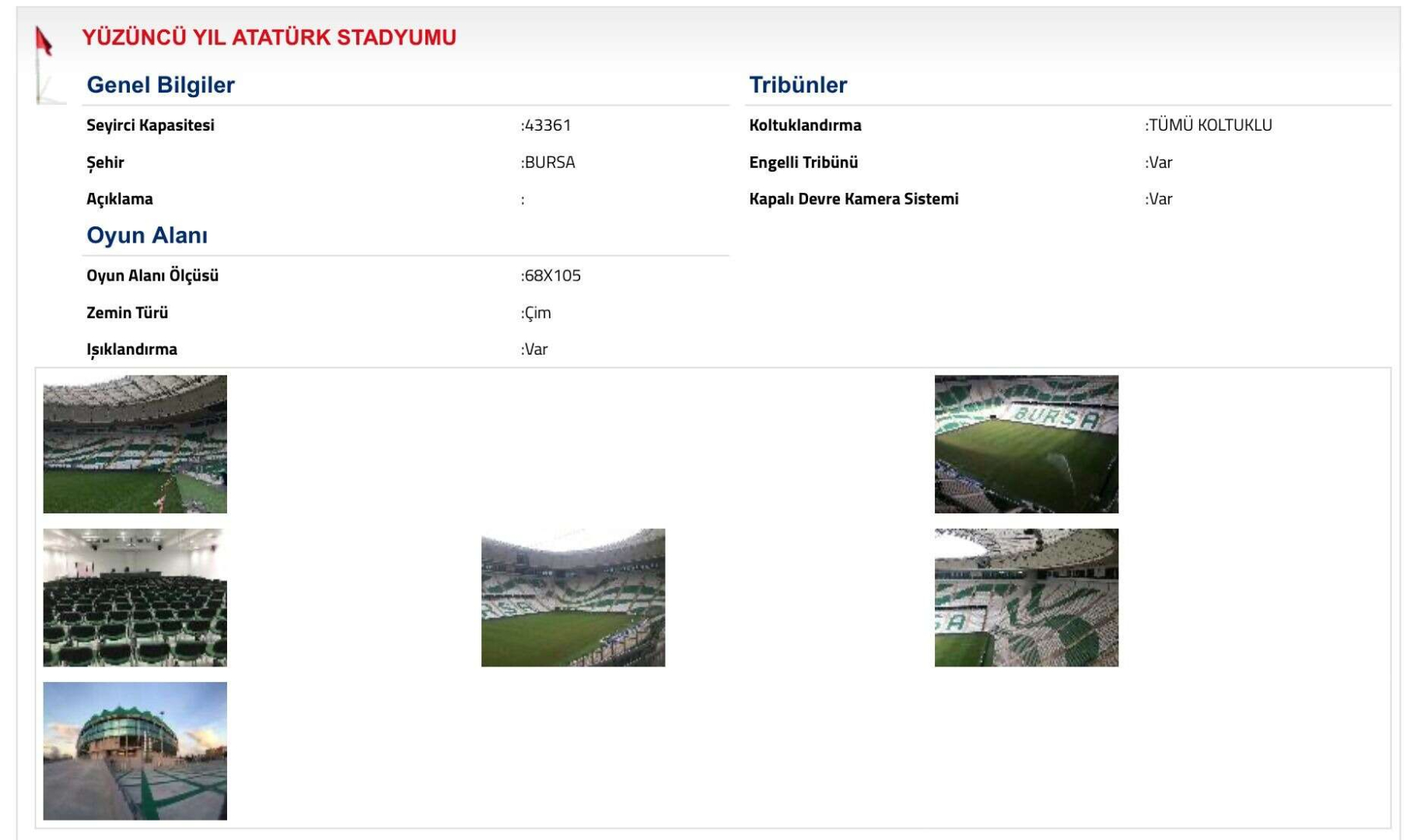 Bursaspor’un stadyumun ismi resmen değişti. TFF’de yer alan isme göre bundan sonra ‘Yüzüncü Yıl Atatürk Stadyumu’ denecek.
