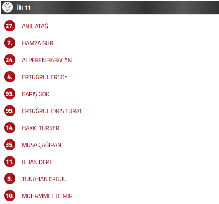 BURSASPOR'UN İLK 11'İ BELLİ OLDU: