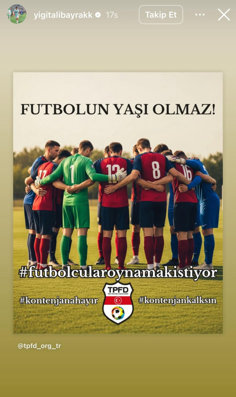 Türkiye Futbol Federasyonu’nun yeni sezonda uygulayacağı kontenjan kararına futbol camiasının tepkisi giderek artıyor. TFF’nin kararına bir tepki de Bursasporlu Yiğitali Bayrak’tan geldi.