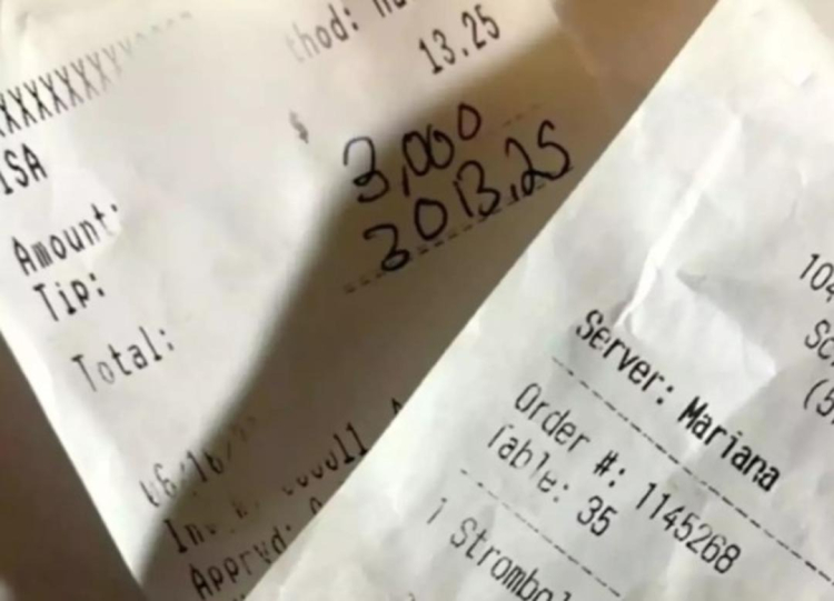 Amerika Birleşik Devletleri'nin Pensilvanya eyaletinin Scranton kentinde bir restoranda bir müşteri yüklü bir bahşiş bıraktı. Garson Mariana Lambert 13 dolarlık yemeğe müşterinin bıraktığı bahşişi görünce büyük bir şaşkınlık yaşadığını dile getirirken, "Bu benim için gerçekten çok şey ifade ediyordu çünkü herkes bir şeyler yaşıyor. Gerçekten kalbime dokundu. Hala inanamıyorum. Hala şoktayım" dedi.