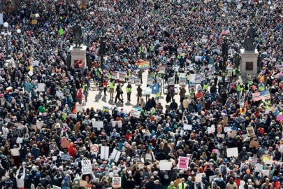 “Ellerinizi çekin” adıyla cumartesi günü düzenlenen gösteriler ABD’nin başkenti Washington’ın yanı sıra New York, Los Angeles gibi büyük kentler dahil olmak üzere 50 eyaletteki 1200 farklı noktada gerçekleşti.