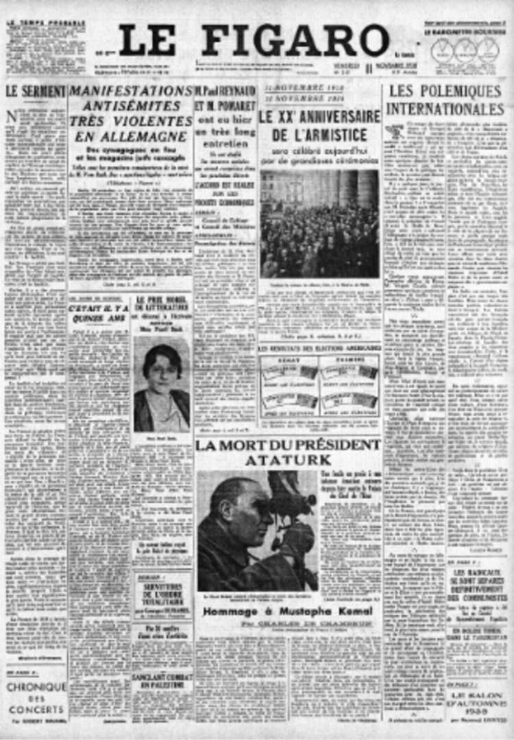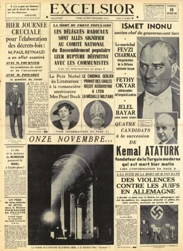 Paris merkezli Excelsior gazetesi “Modern Türkiye’nin kurucusu Kemal Atatürk dün sabah vefat etti” şeklindeki haberle Atatürk'ün vefatını duyurdu.