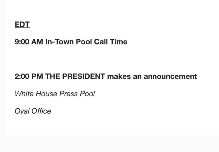 Beyaz Saray, Trump'ın bugün 14.00'da (TSİ 21.00) Oval Ofis'te basın mensuplarına bir açıklama yapacağını duyurdu.