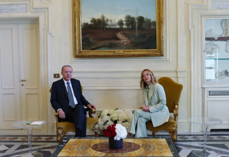 Cumhurbaşkanı Recep Tayyip Erdoğan, Türkiye-İtalya 4. Hükümetlerarası Zirvesi'ne katılmak için gittiği Roma'da, İtalya Başbakanı Giorgia Meloni tarafından Villa Pamphili Konutu'nda resmi törenle karşılandı. Ardından Erdoğan ile Meloni baş başa görüşmeye geçti.