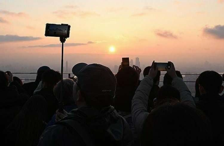 Asya kıtasının doğusunda yer alan Güney Kore'de ise 2023'ün son gün batımını izlemek için Namsan Kulesi'nde toplananlar oldu. Grup, başkent Seul'deki gökdelenin tepesinden güneşin batışını izleyip fotoğraflar çekti.