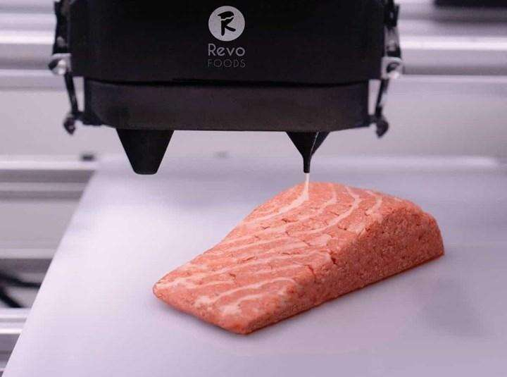 3D baskılı vegan somon filetosu, gıda teknolojisi startup'ı Revo Foods aracılığıyla 14 Eylül'de Avusturya süpermarketlerinin raflarında yerini almaya başladı. "THE FILET - Inspired by Salmon" olarak adlandırılan gıda ürünü, ilk 3D baskılı vegan deniz ürünü ve aynı zamanda genel olarak süpermarketlerde satışa sunulacak ilk 3D baskılı ürün olma özelliğini taşıyor.