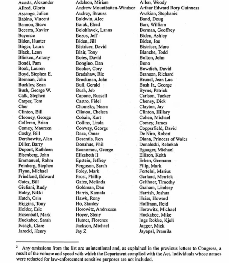 Kongre’ye gönderilen resmi mektupla birlikte, aralarında dünya çapında ünlüler ve siyasetçilerin bulunduğu 305 yüksek profilli ismin yer aldığı kesin liste paylaşıldı. Bu kadar kapsamlı bir listenin ilk kez resmi olarak yayımlanması gündemde.