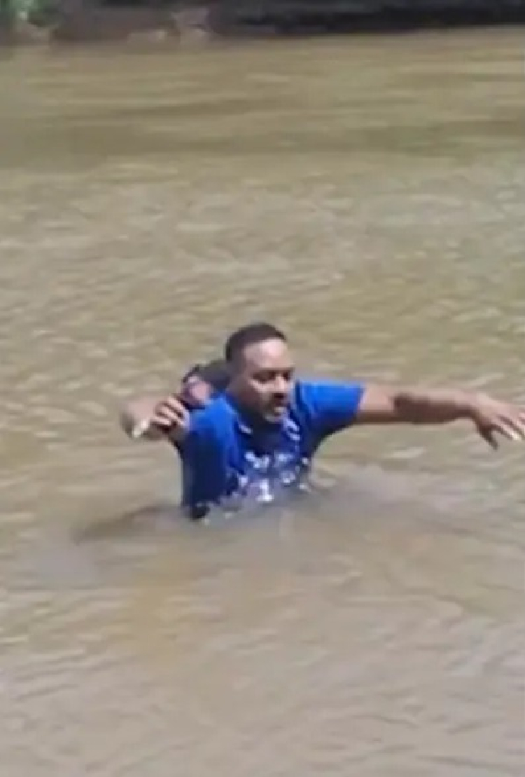 Muhabir Frazão, kameraya konuşurken suyun içinde bir hareket fark etti. Hemen ayakkabılarını çıkartarak göğsüne kadar suya girdi ve dipte sert bir şeye dokunduğunu hissetti.