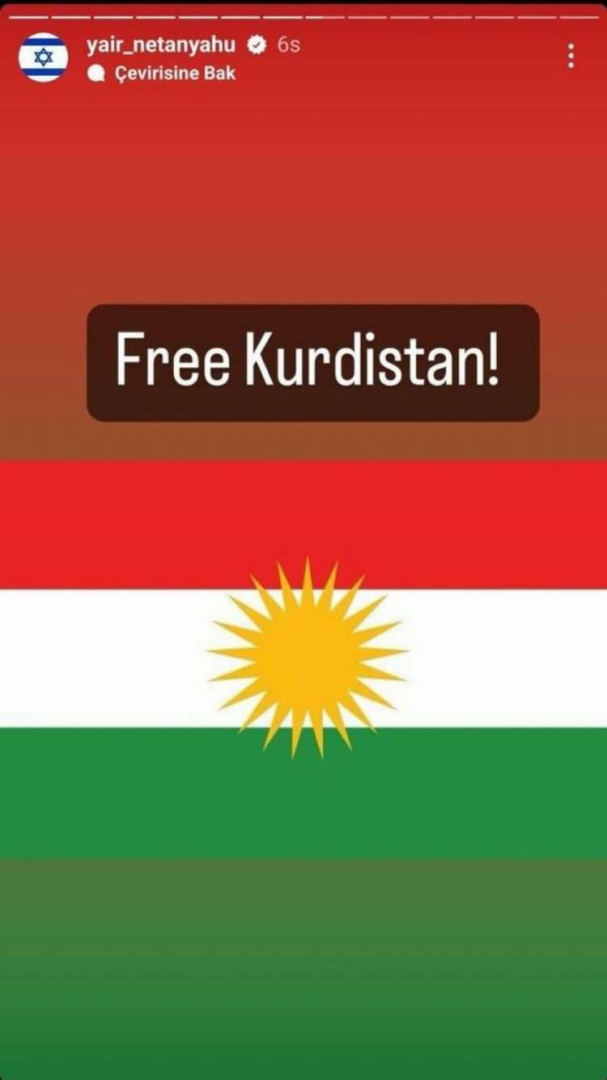 Yair Netanhahu'nun 'Free Kurdistan' paylaşımı Türkiye'de gündem oldu.