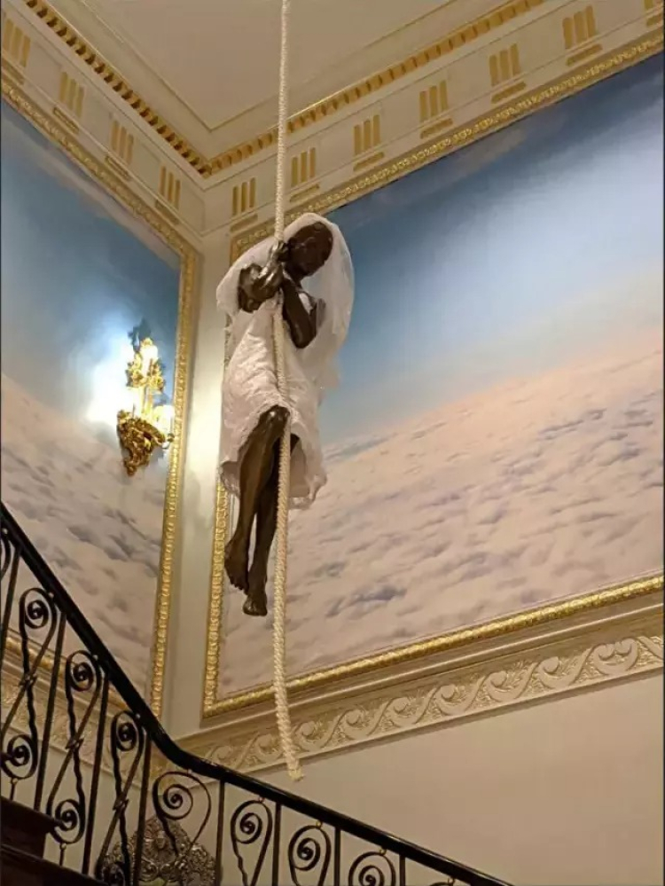 Epstein’ın malikânesinde dikkat çeken bir diğer unsur ise gelinlik giymiş bir kadın heykeliydi. Merdivenlere yerleştirilmiş olan bu heykel, sarsıcı bir görüntü sunuyor. Ayrıca, Epstein’a gelen doğum günü mektuplarında, evdeki akşam yemeklerinin ayrıntıları yer alıyor. Yemeğe katılan isimler arasında sanatçılardan politikacılara kadar geniş bir yelpaze yer alıyor.