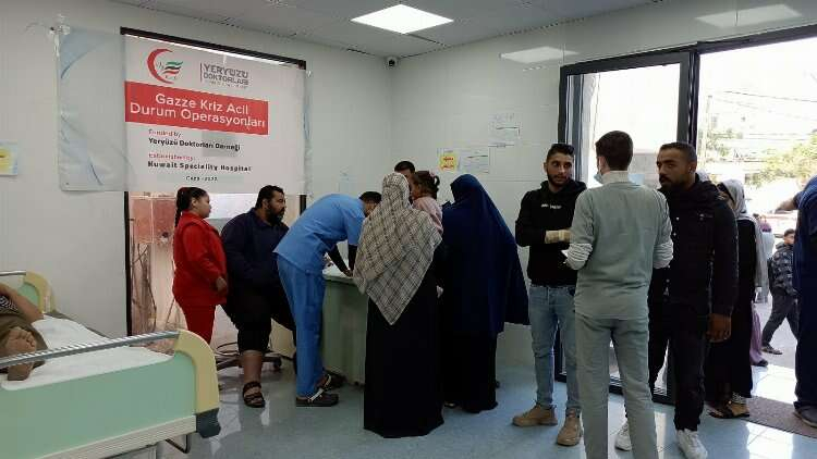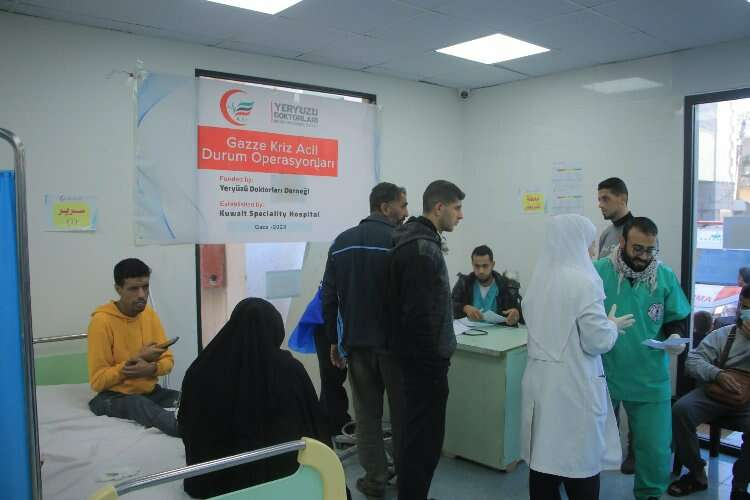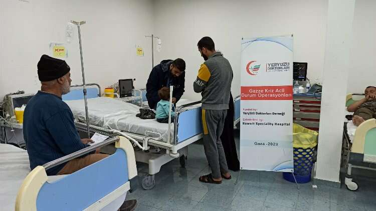 Gazze’nin kuzeyinde yer alan hastanelerin hizmet dışı kalması ile nüfusun arttığı güney Gazze’de sağlık hizmetleri Kuveyt Hastanesinde devam ediyor. Yeryüzü Doktorları ekipleri hastanede görev alırken, sağlık sistemini ayakta tutabilmek için hastanenin tüm sağlık personellerine ve ailelerine maddi destek veriyor.
