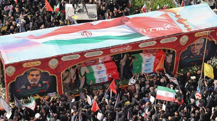 İsrail’in saldırılarında hayatını kaybeden yetkililer ve bilim insanları için Tahran’da cenaze törenleri düzenlendi. Törene binlerce kişi katılırken "ABD'ye ölüm" ve "İsrail'e ölüm" sloganları atıldı. Törene, başta Cumhurbaşkanı Mesud Pezeşkiyan olmak üzere çok sayıda üst düzey yetkili katıldı.