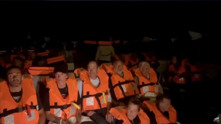 Filonun basın bilgilendirme grubundan yapılan açıklamada, "Gemilerimiz yasa dışı kuşatma altında. Kameralar devre dışı kaldı ve gemilere askeri personel çıktı. Gemiyle iletişimimiz koptu." ifadeleri kullanıldı.