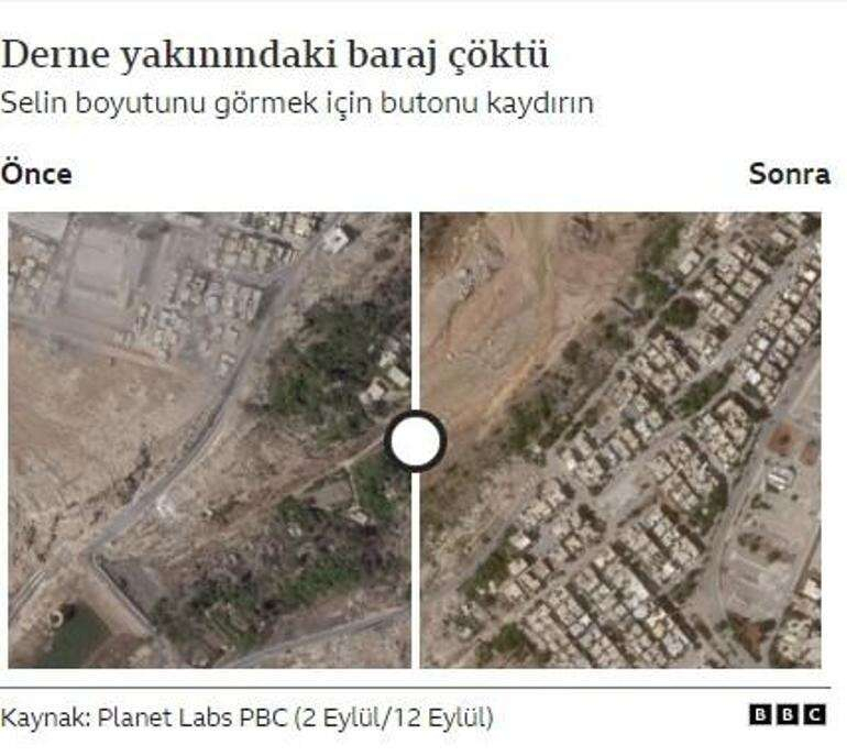 Su mühendisliği uzmanları BBC'ye, şehirden yaklaşık 12 km uzaklıktaki üst barajın önce çökmüş olabileceğini ve suyun nehir vadisinden aşağıya, Derne'ye daha yakın olan ve mahallelerin sular altında kaldığı ikinci baraja doğru sürüklenmiş olabileceğini söyledi.