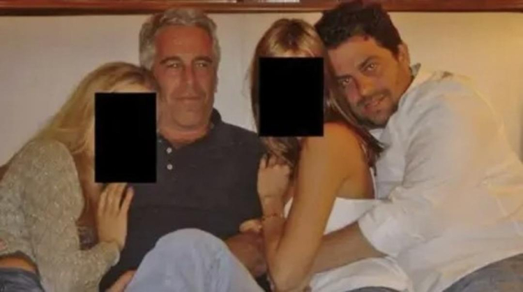 Fotoğraflarda, Ratner'ın, Epstein ve kimliği gizli iki kadınla birlikte bir koltukta sarılarak oturduğu görülüyor.