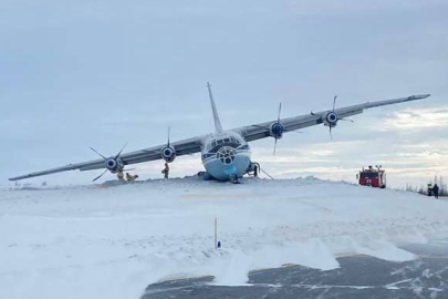Rusya’da Antonov An-12 tipi kargo uçağı iniş takımlarının arızalanması sonucu pistten çıktı.