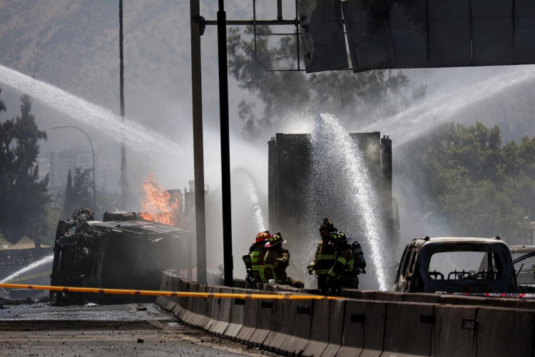 Santiago’ya bağlı Renca ilçesinde bulunan General Velasquez Otoyolu’nda seyir halindeki sıvılaştırılmış gaz taşıyan tanker, devrilip diğer araçlara çarptıktan sonra patladı.