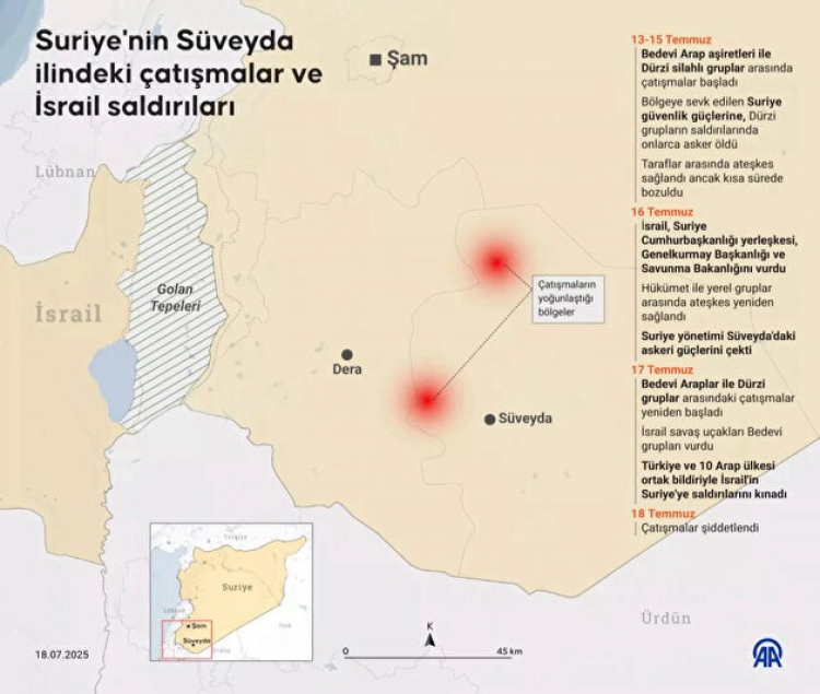 Öte yandan Suriye İçişleri Bakanlığı, "Suriye güvenlik güçleri Süveyda iline yerleşmeye başladı" açıklamasında bulundu.