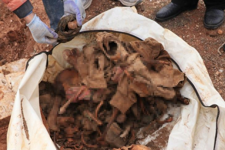 Bulunan toplu mezarda, devrik rejiminin öldürdüğü sivillere ait olduğu düşünülen ceset kalıntıları ortaya çıkarıldı.