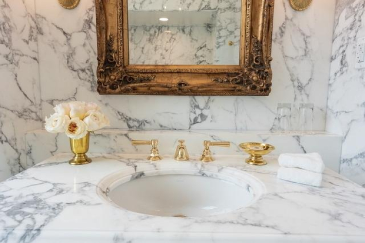 Görsellerde, banyoda kullanılan altın tonları dikkat çekti.