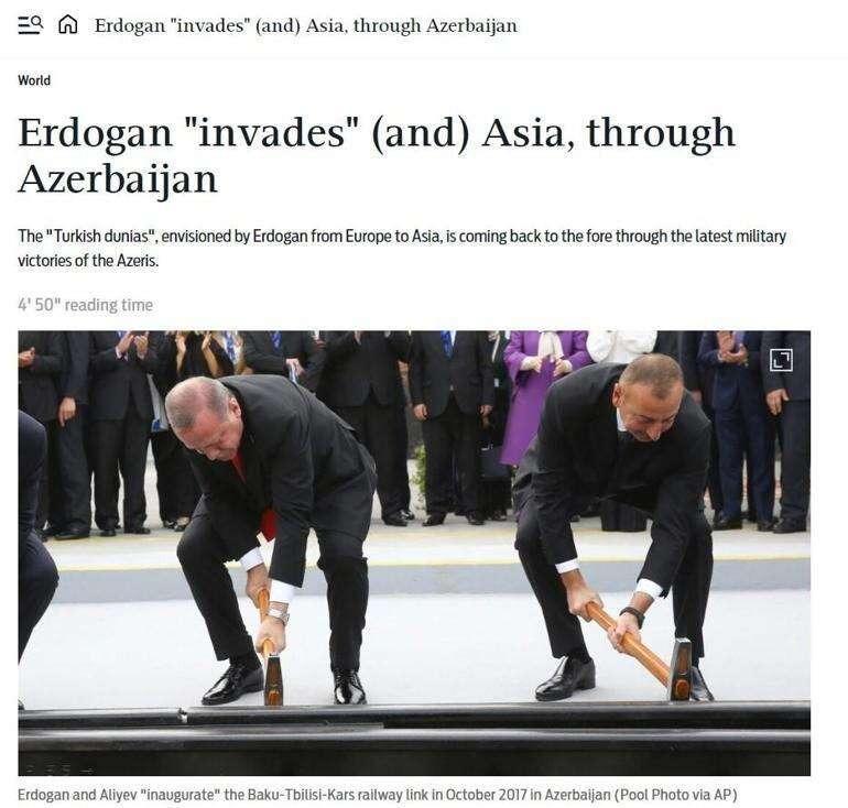 Haberin son kısmında ise Türkiye ve Azerbaycan'ın coğrafi olarak İran ve Ermenistan tarafından çevrildiği ancak küçük bir koridor olan Zengezur sayesinde iki ülkenin 'sınır' anlamında birleştiği belirtildi. Gazete konuyla ilgili 'Erdoğan'ın Avrupa'dan Asya'ya kadar hayal ettiği 'Türk dünyası' Karabağ zaferi sonrası yeniden gündeme geldi' değerlendirmesinde bulundu.
