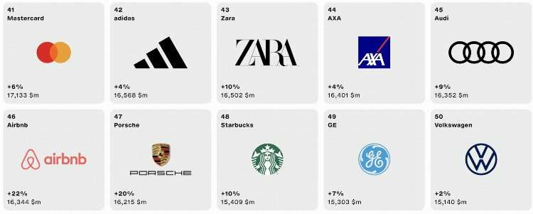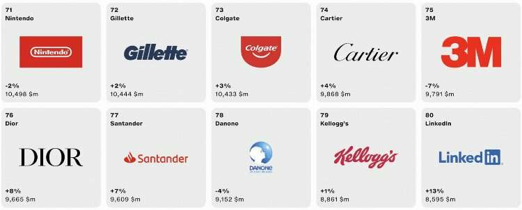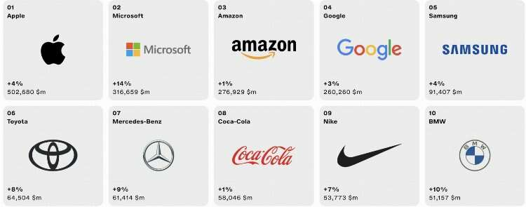 Interbrand'in her yıl gerçekleştirilen Dünyanın En Değerli Markaları (Best Global Brands) araştırmasının 2023 sonuçları açıklandı. Best Global Brands sıralamasında marka değerini yüzde 4 artışla 502 milyar dolara çıkaran Apple zirvedeki yerini korudu. Marka değerini yüzde 14 artıran Microsoft ikinci, Amazon üçüncü sıraya yerleşti. Teknoloji sektörünün damga vurduğu ilk 10’da yer alan diğer markalar, sırasıyla Google, Samsung, Toyota, Mercedes-Benz, Coca-Cola, Nike ve BMW oldu.