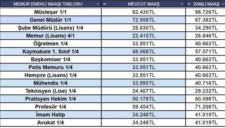 6 AYLIK ENFLASYON FARKI VE TOPLU SÖZLEŞMEYE GÖRE EMEKLİ MEMUR MAAŞ TABLOSU