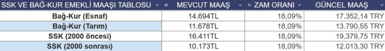 Kesin olmayan 6 aylık enflasyon farkına göre milyonlarca SSK, Bağ-Kur, memur ve memur emeklisinin alacağı zam da güncellenmiş oldu. Buna göre, güncel zam tablosu şu şekilde olacak: