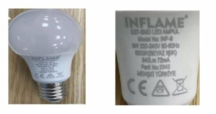 A101 marketler tarafından satılan INFLAME marka INF-9W ampul için toplatma kararı çıktığı resmen açıklandı. A101 marketler tarafından yapılan duyuruda, INFLAME marka INF-9W ampulün uygunsuz olduğunun tespit edildiği aktarıldı.