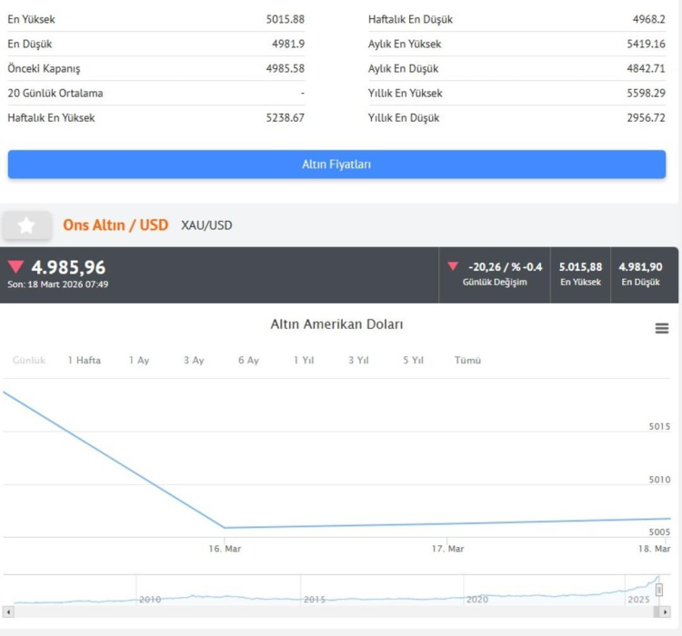 18 MART GÜNCEL ALTIN FİYATLARI