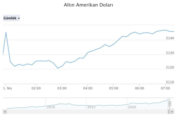 Şu anda ise ons altın 3 bin 142 dolar seviyesinde. Gram altın 3 bin 833 lira seviyesinde iken, çeyrek altın 6 bin 313 liradan alıcı buluyor.
