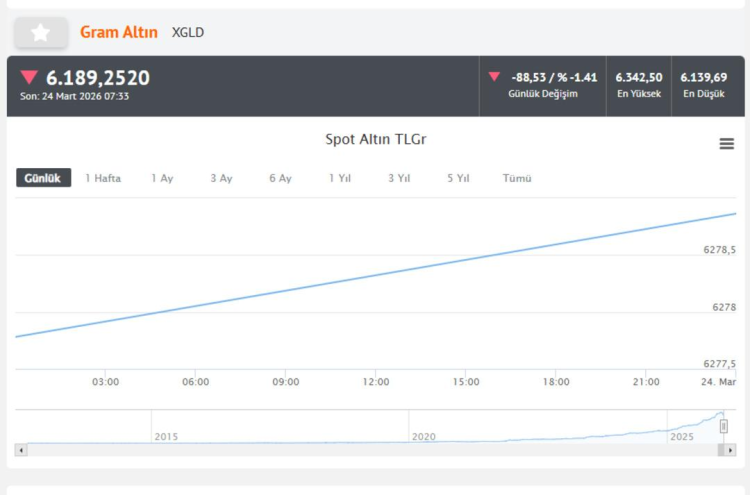Altın fiyatlarında yaşanan hareketlilikle birlikte herkes "Bugün altın ne kadar? 24 Mart gram altın fiyatı kaç TL?" sorularına yanıt ararken; altının onsu bugünkü işlemlerde ise TSİ 07:35 itibarıyla 4 bin 330 seviyelerinde işlem görüyor.