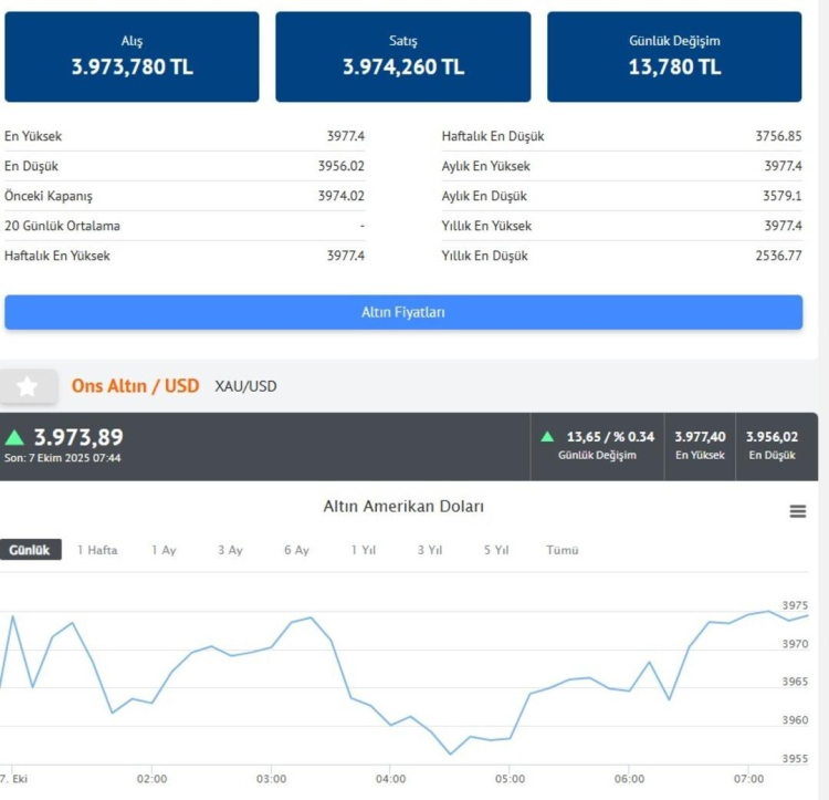 Ons altın fiyatı saat 07.44 itibarıyla 3973 dolar seviyesinde.