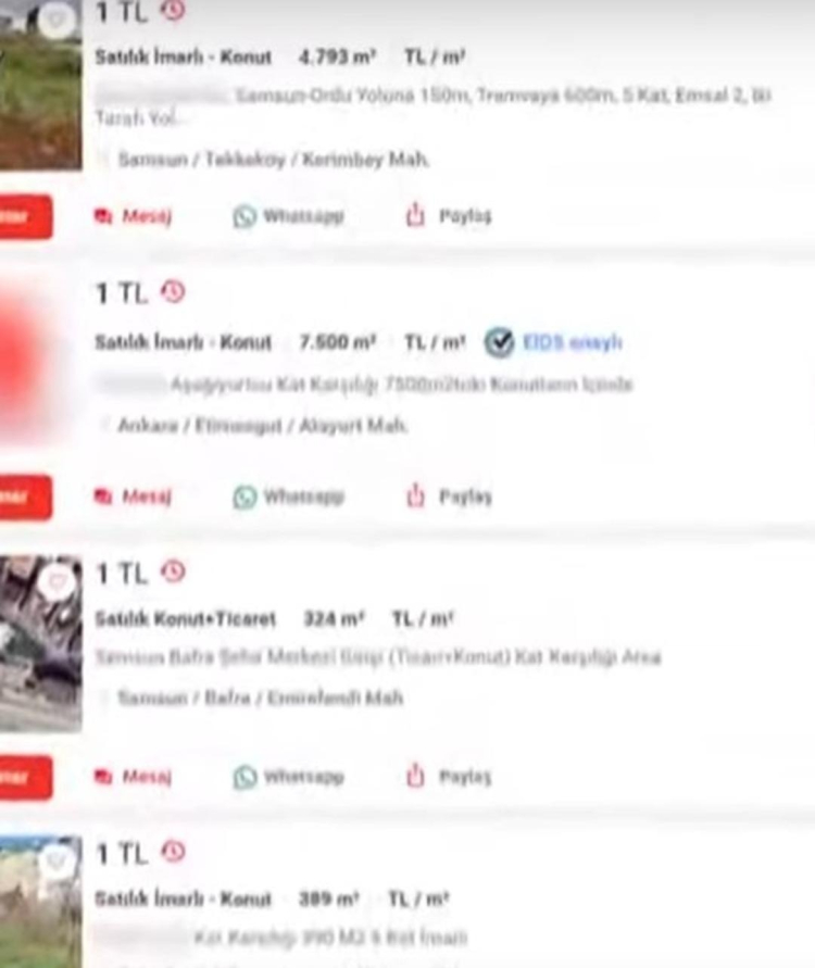 Emlak piyasasında gayrimenkul satın almak isteyenler ilan sitelerine göz atarken pek çok kişi kriterlerini belirledikten sonra gelişmiş sıralamadan en düşükten pahalıya doğru sırala diyerek arama yapıyordu. Bu şekilde arama yapan vatandaşların karşısına 1 TL'lik ilanlar çıkıyordu. O ilanlar için Bakanlık harekete geçti. Arsa ilanları ile ilgili bir detay da ortaya çıktı.