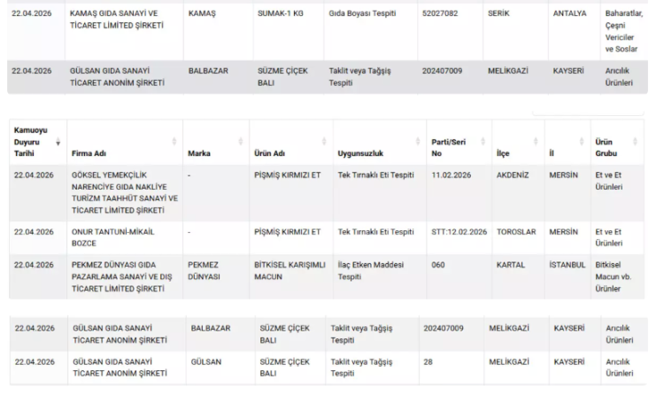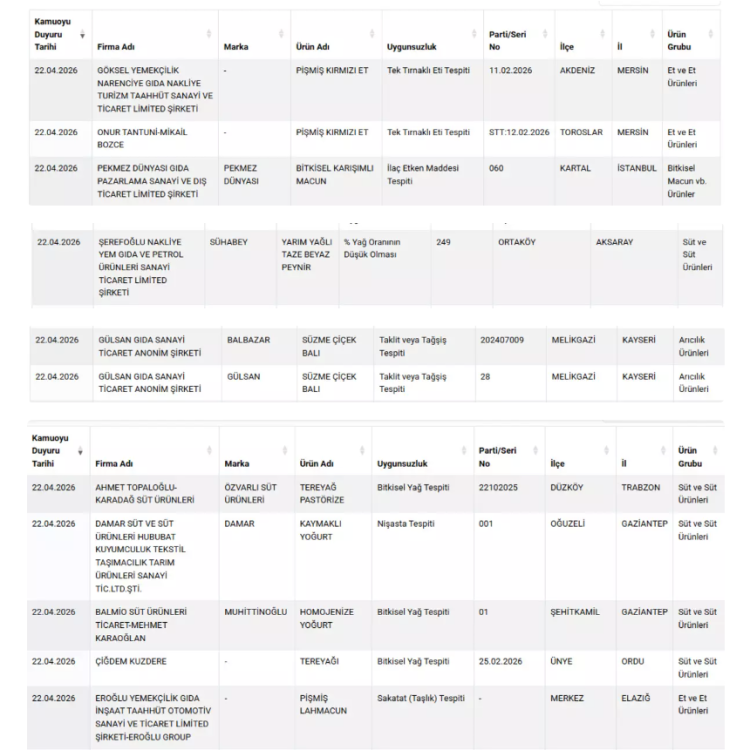 Mandıradan kasaba kadar Tarım ve Orman Bakanlığı denetimlerine devam ediyor. Gıdada uygunsuzluk yapan marka ve esnaf ise taklit-tağşiş listesinde yayımlanıyor. Bazen büyük markaların da girdiği liste dün bir kez daha güncellendi.